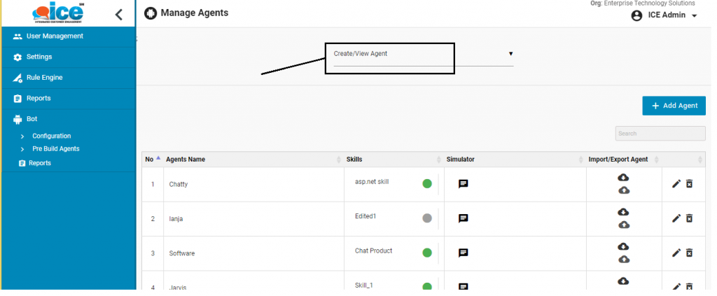 Click Create/View agent dropdown box that will display the list of created agents. This is as shown below-