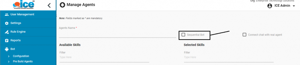 To enable the feature of automatic story writing, create a non sequential chat bot by leaving the Sequential checkbox unchecked. This is as shown in the below screen-