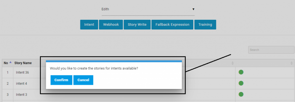 Click Confirm button for the system to generate the story automatically for a non sequential chat bot agent.