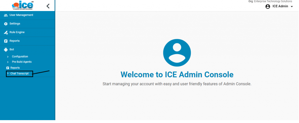 To view chat bot transcript report, click Bot>Reports>Chat Transcript as shown in the image below-