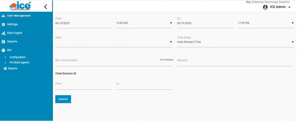Click the hyperlinked IDs under Chat Session ID and the system will display the detailed report of the clicked session ID on the same console. This is as shown below-