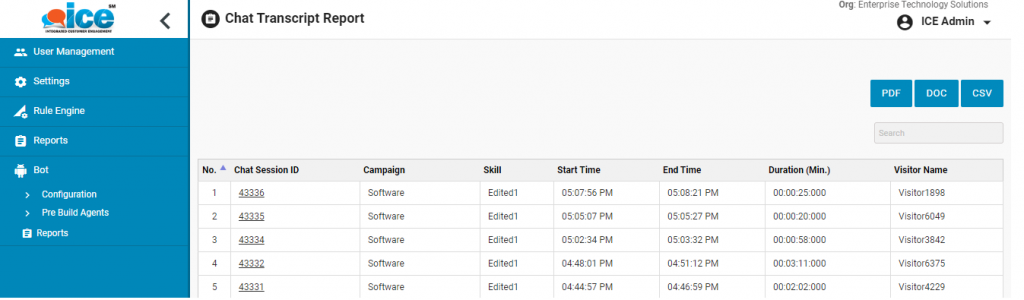 This will open up chat bot transcript report as shown below-