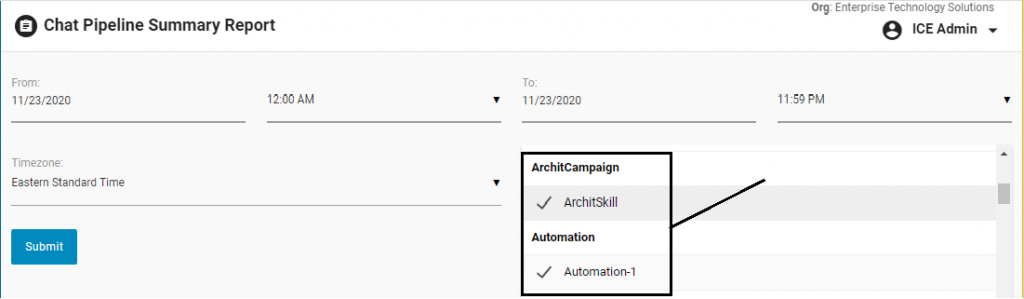To view Chat Pipeline Summary report, go to Reports > Chat > Chat Pipeline Summary and the following screen appears.