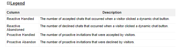 This is a sub-report that is accessible through the main Chat Pipeline Summary Report, by clicking on the data values displayed under the Reactive Handled, Reactive Abandoned, Proactive Handle, and Proactive Abandon columns.