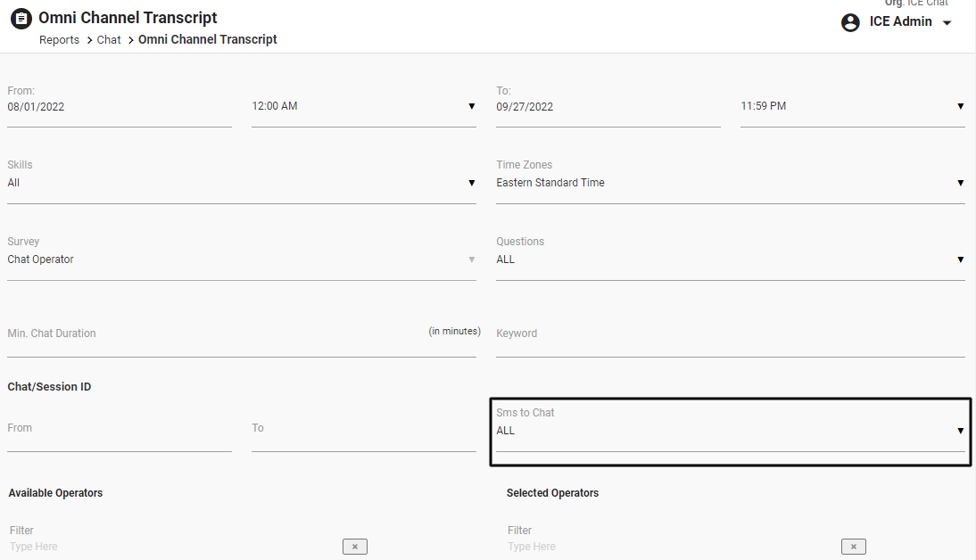 All the new SMS composed by the agent or supervisor can view the details about such chats in the Omni Channel Transcript report.