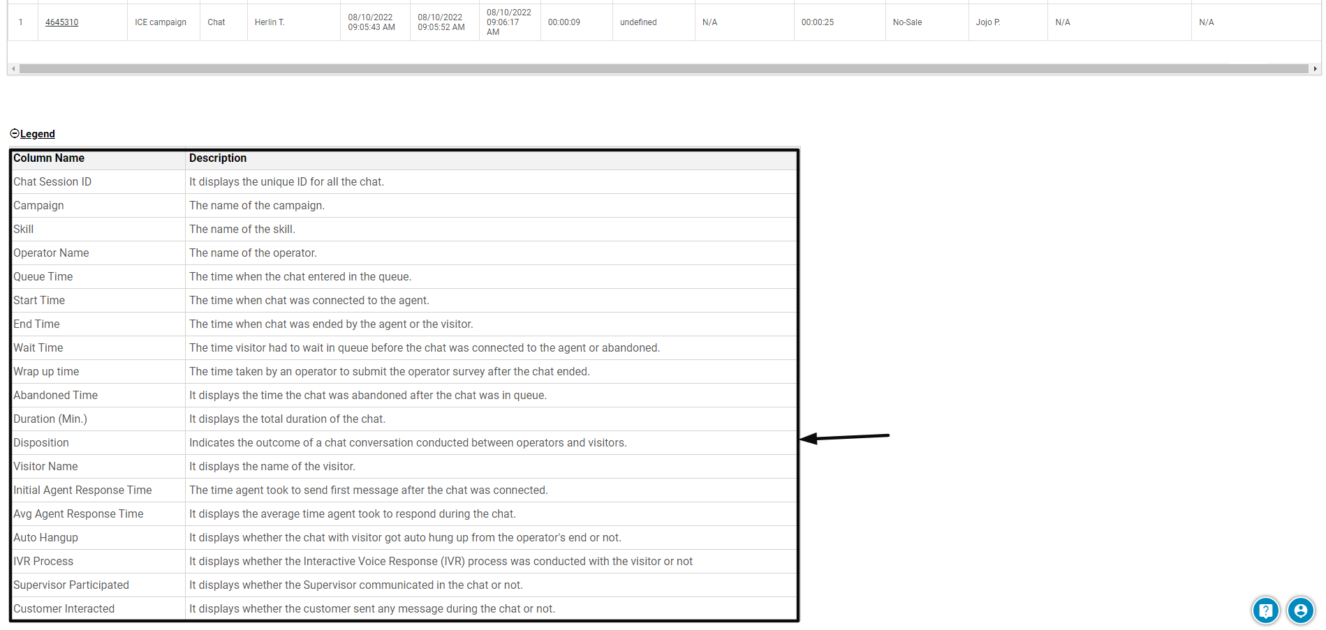 - Disposition: Displays the outcome of a chat conversation conducted between operators and visitors.