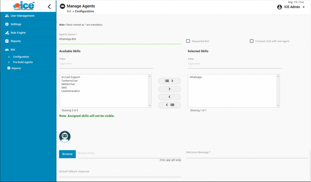 Note: Make sure there is skill added for the WhatsApp mode in the campaign. If not add the skill firstly and then proceed with the bot configuration.