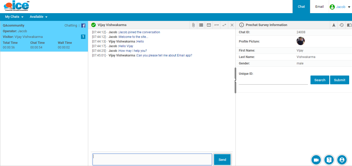 All the chat records made between visitor and agent 1 will be now transferred to agent 2. This is as shown below-