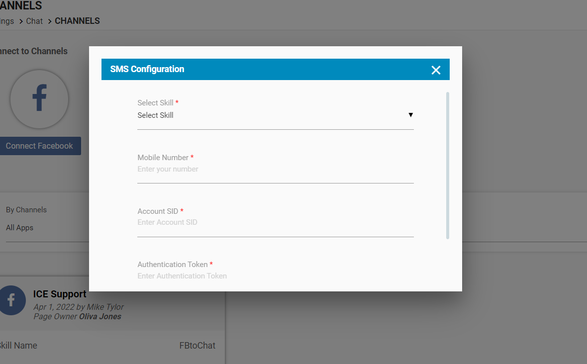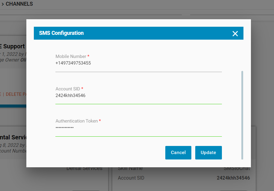 Enter the Account SID and Authentication Token along with the selection of the Skill and Mobile Number.