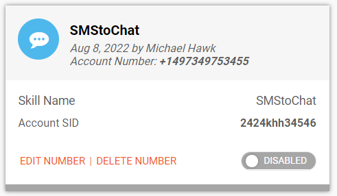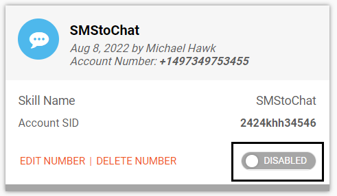 Note: This number should not be used for any other skills for the SMS channel.