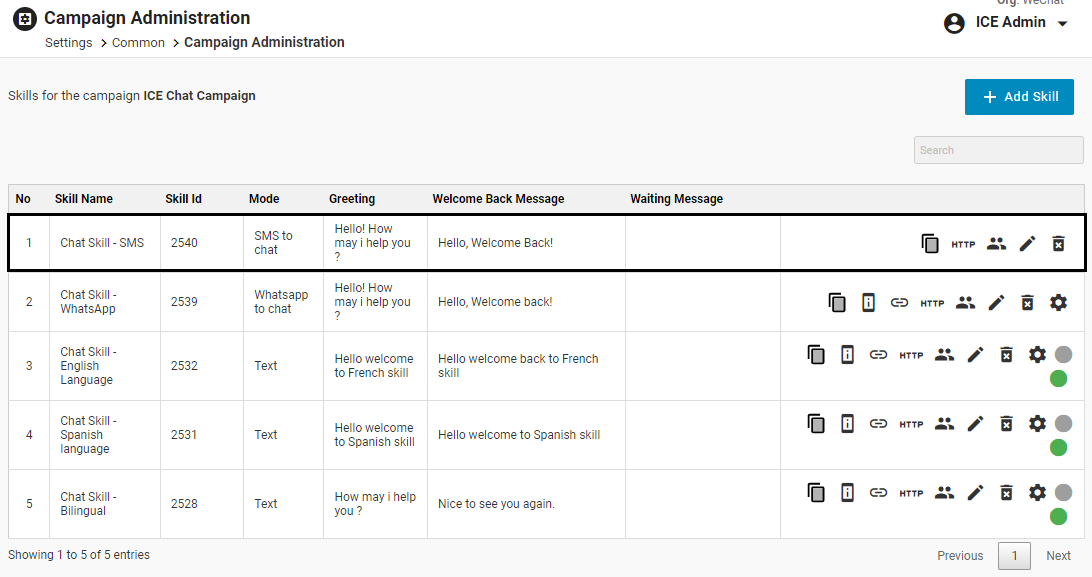 Click Add Skill button for the selected campaign as shown on the below screen: