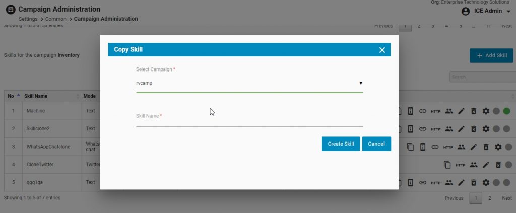 ICE Application allows admin to clone the existing skill while assigning to an agent. This feature helps admin to avoid creating the same skill every time.