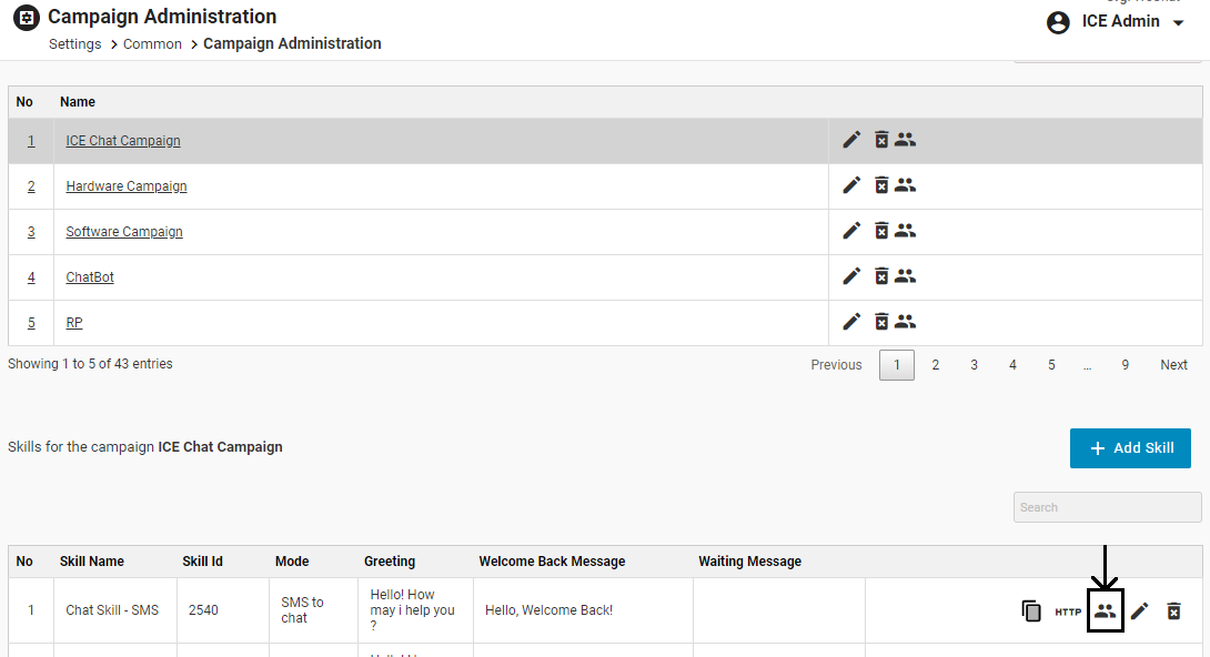 Click Assign usersicon to assign the users to a particular skill of a campaign as shown highlighted in the screen below: