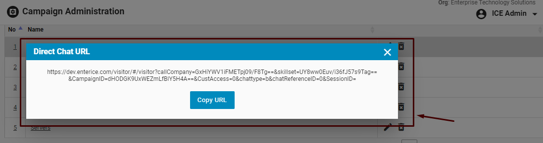 Click Copy URL button which will copy the generated URL of the console. This URL could be appended in the mail boxes through two scenarios for a visitor to establish direct chat connection.