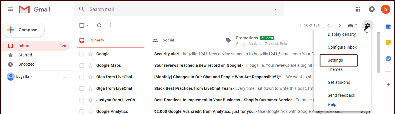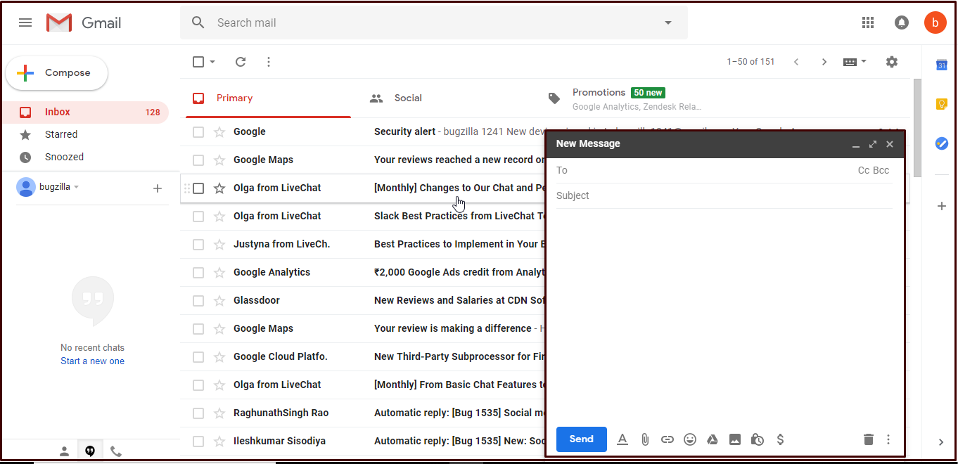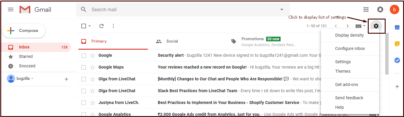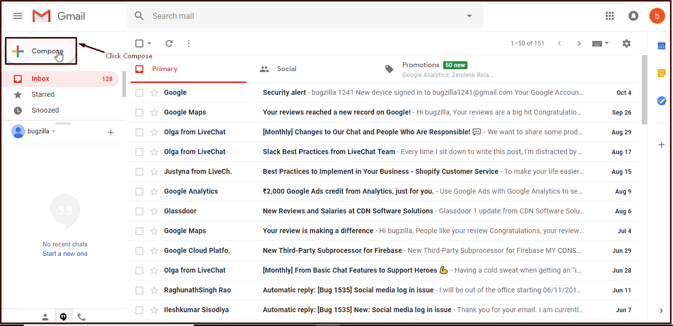- Login with Gmail credential that will redirect to the inbox like the one as shown below-