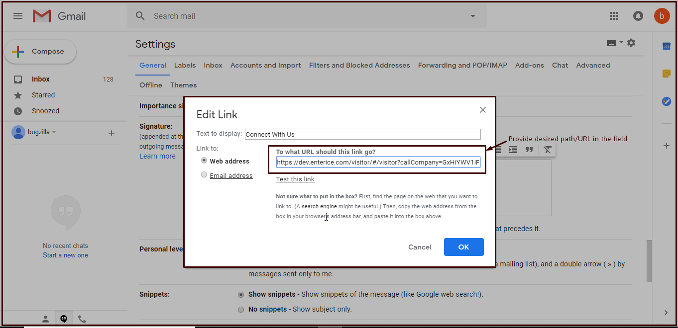 Scenario 2- Appending Link to Text In Compose Mail Window-