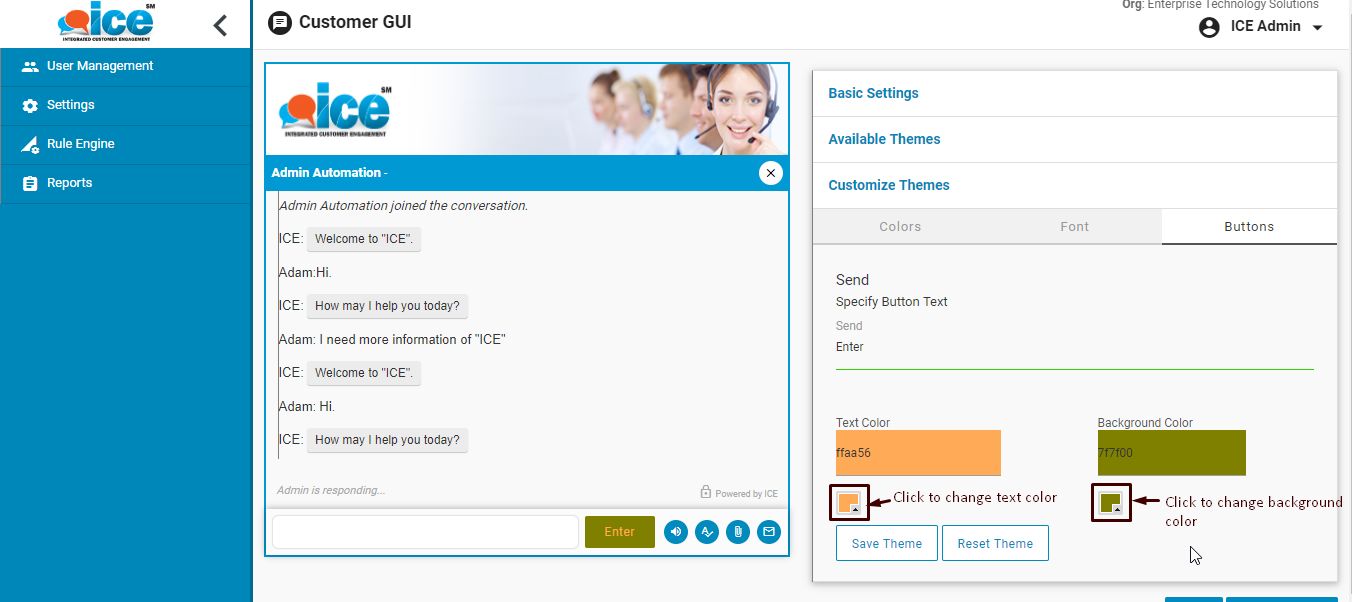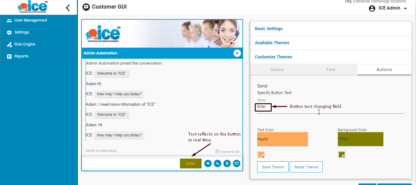 A user can also change the texts of Send button in the chat interface as per the desire. This will be reflected at the same time as a preview. This is as shown in the below screen-