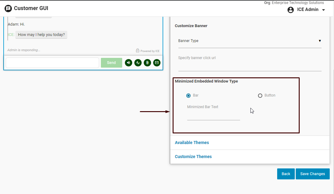 To set this functionality, scroll to Minimized Embedded Window Type in Customer GUI console as shown in the below screen-
