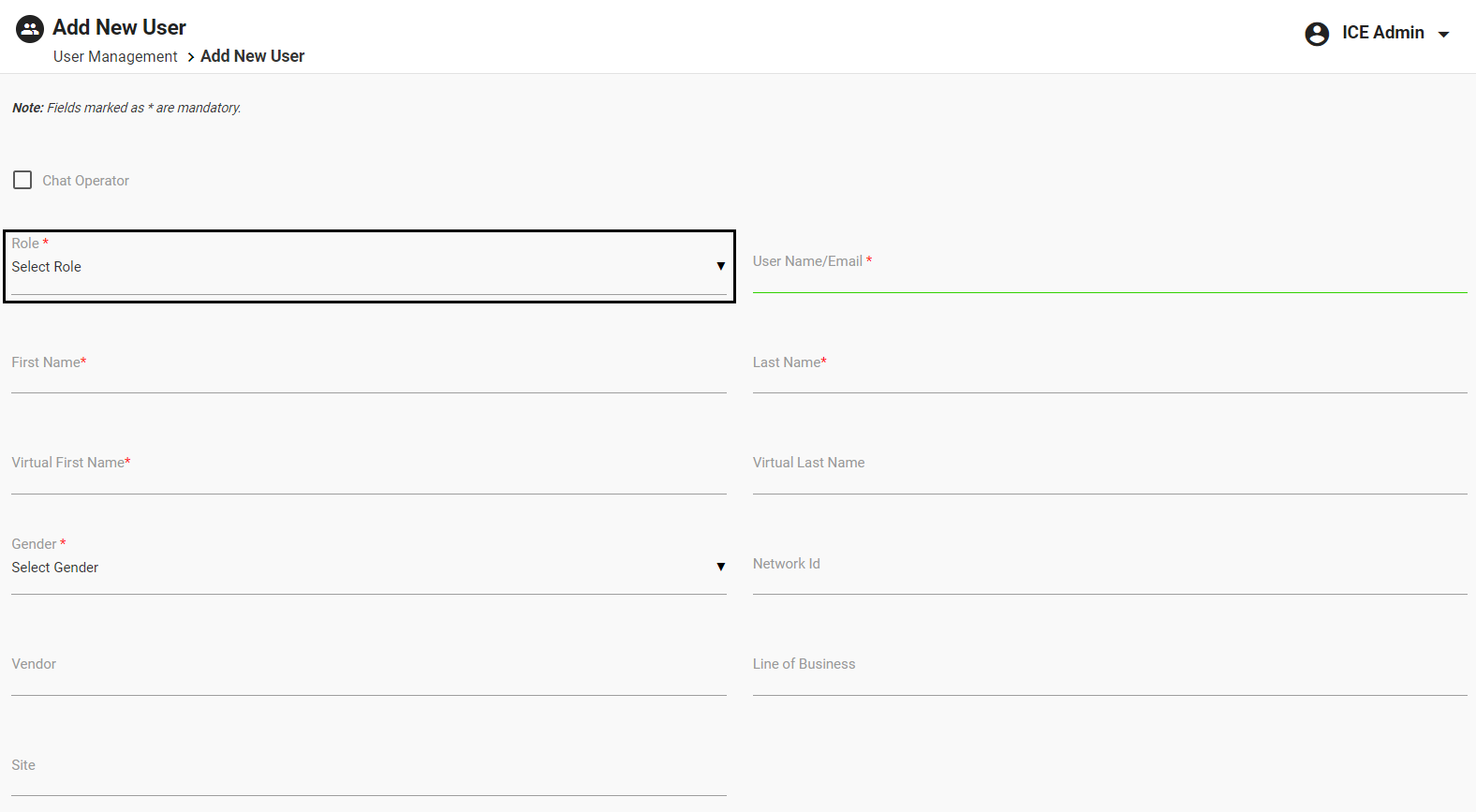 - Select the Role dropdown on the Add New User page as shown highlighted in the below screen.