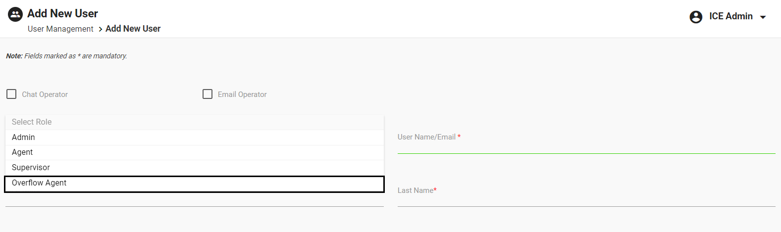 - The list of different user roles will be displayed. Select Overflow Agent from the Role dropdown list.