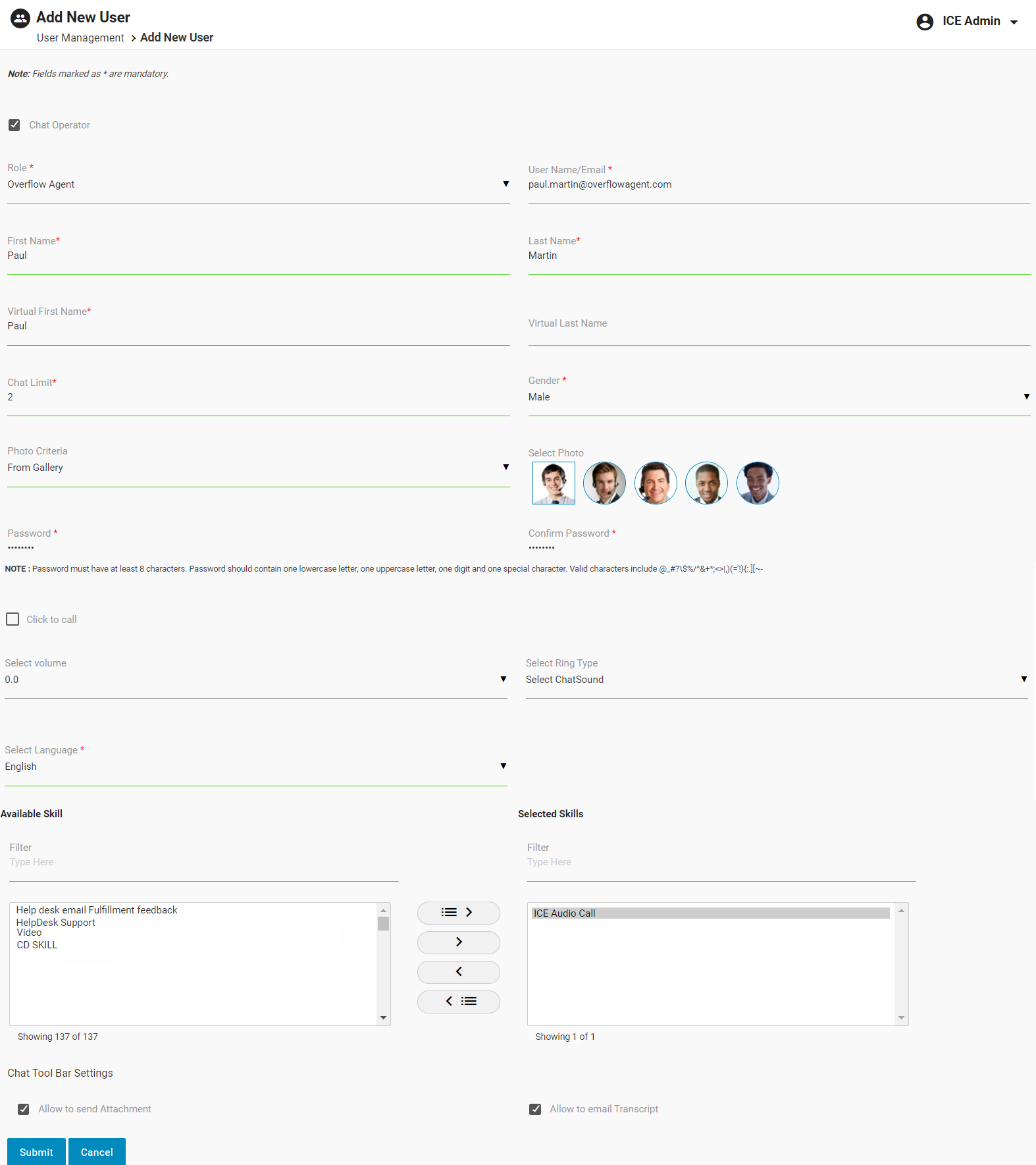 - Browse Photo: Click Browse. Select the photo of the overflow agent from the local system.