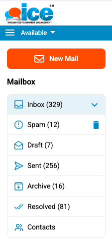 6. Folder List- It displays a list of folders like Inbox, Spam, Draft, Sent, Archive and Resolved.