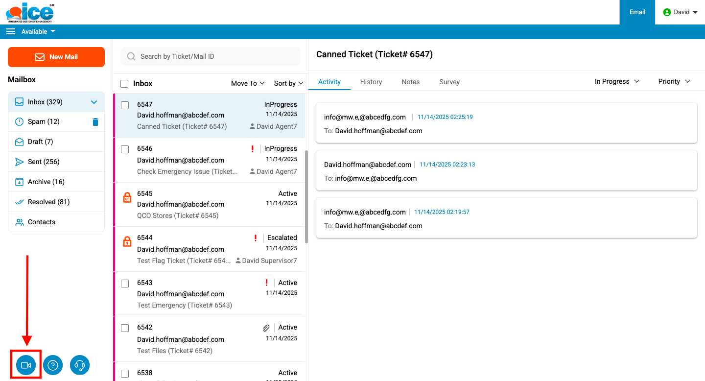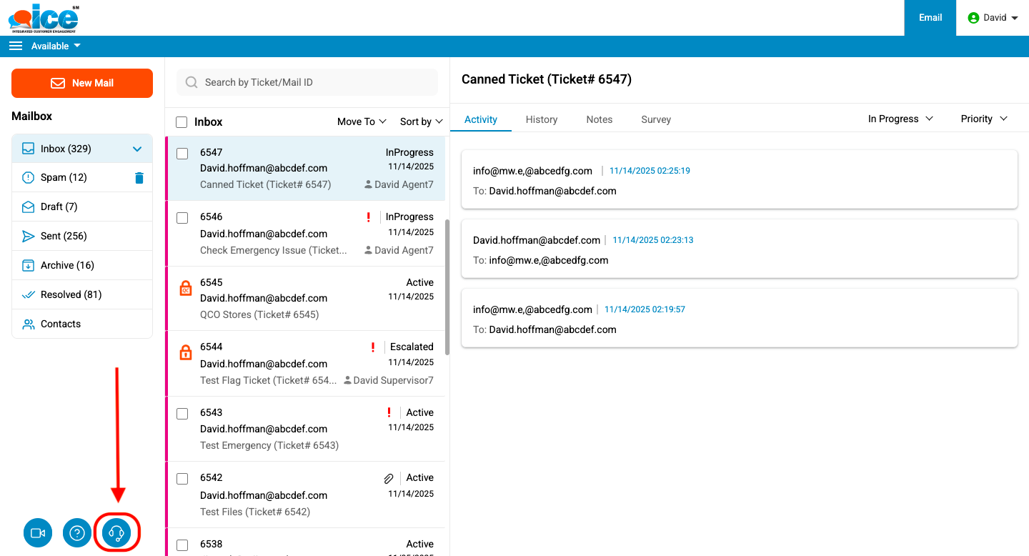 - Internal Chat– Allows a user ( Email agent) to chat internally with other available operators.