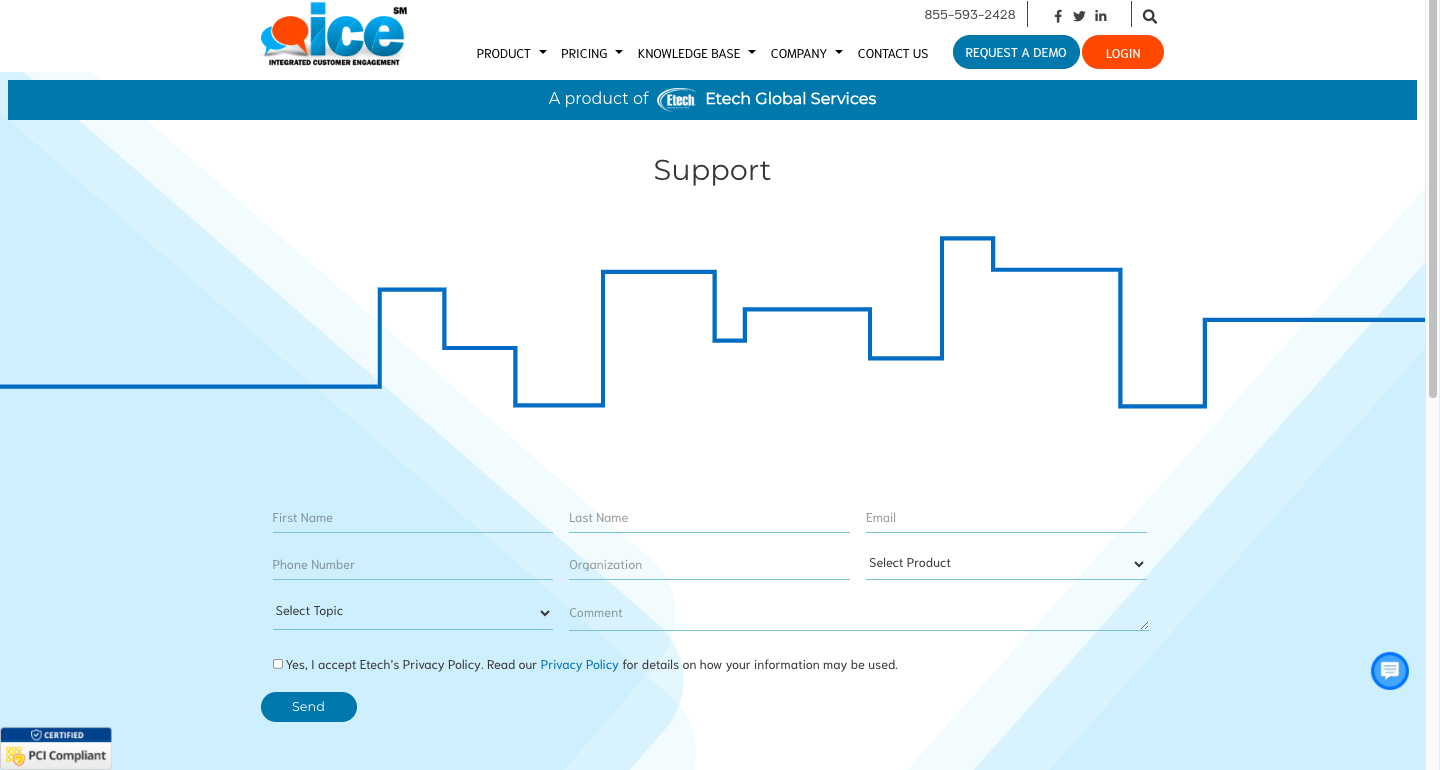 The click action performs redirecting the user to support window, where user can fill in the required entries in the fields. Once finished, when user clicks on Submit button, a ticket will be generated in ICE help desk. Shown below is the Support console-