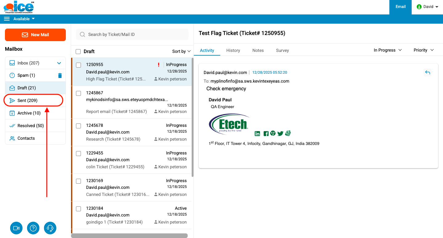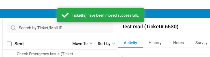 Click Sent  to view all the sent tickets as shown in the below screen-