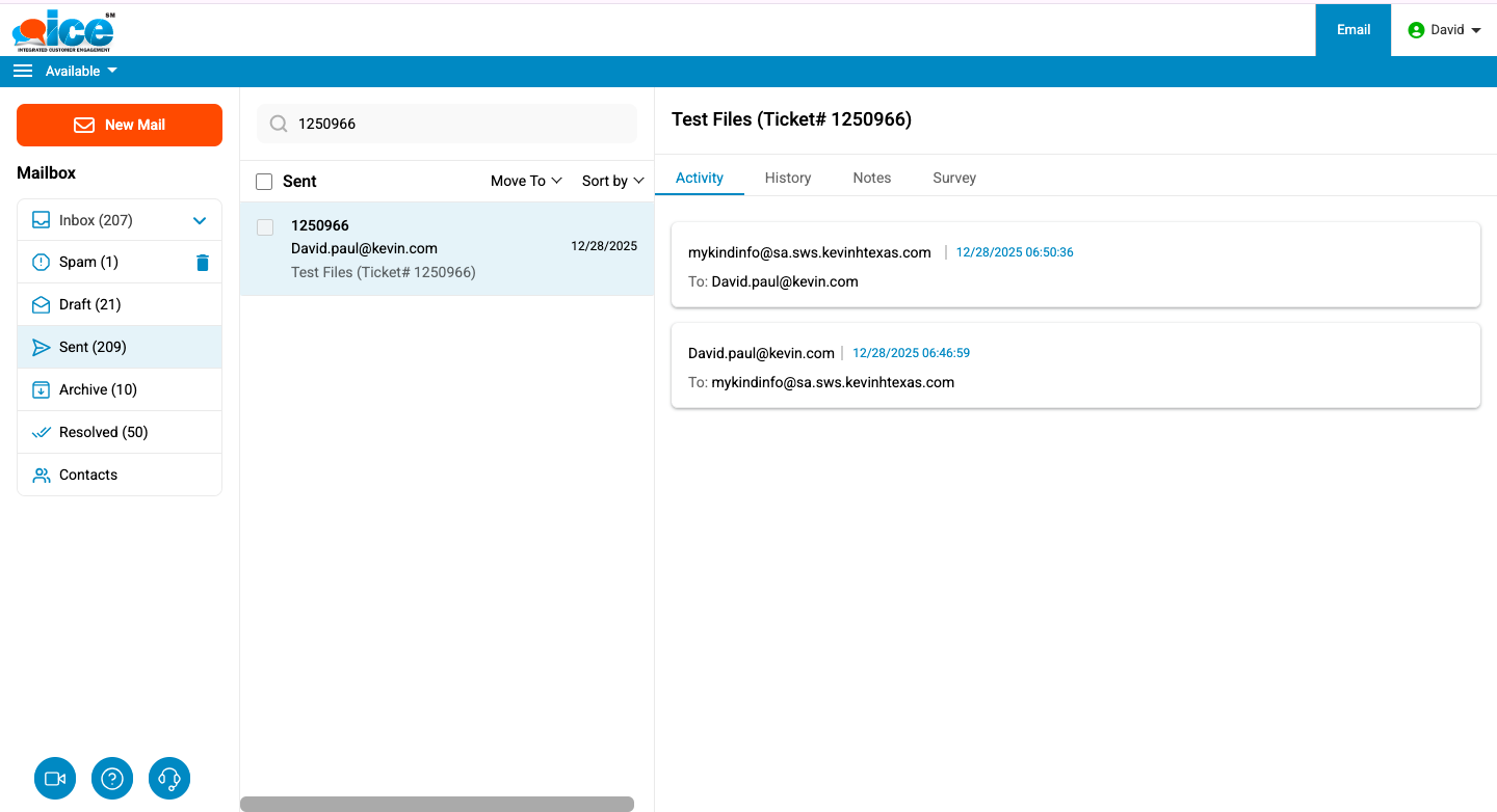 Note: If the emails sent for specific skills are once moved from the sent folder to the inbox folder, then such emails will be visible to all the agents and supervisors assigned with that specific skill.