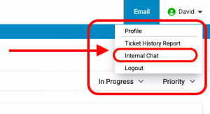 A new tab opens in the browser, as an operator clicks on Internal Chat.