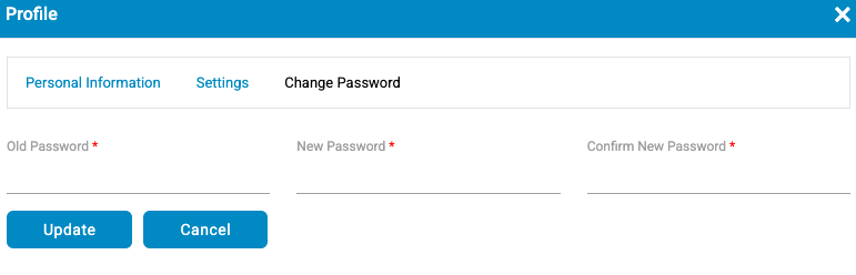 A change password screen under the profile popup window is displayed like the one as shown below-