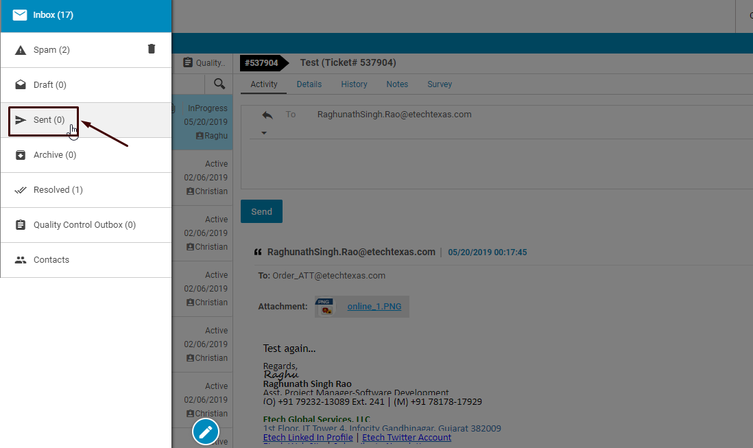 An operator can further select a particular ticket and perform the required action. An operator can either view the sent ticket or delete it if required using