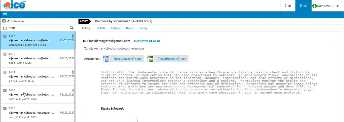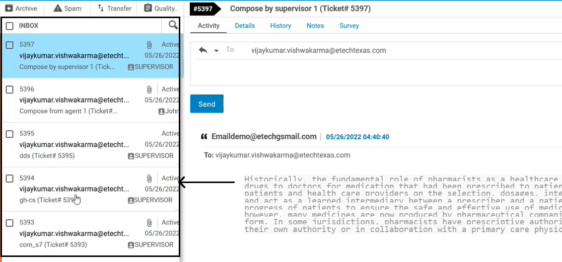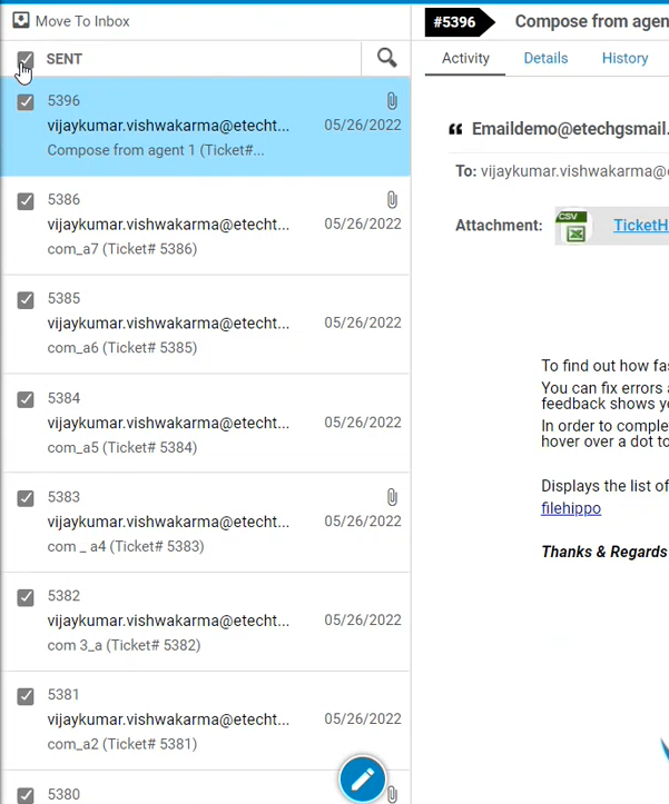 Note: If the emails sent for specific skills are once moved from the sent folder to the inbox folder, then such emails will be visible to all the agents and supervisors assigned with that specific skill.
