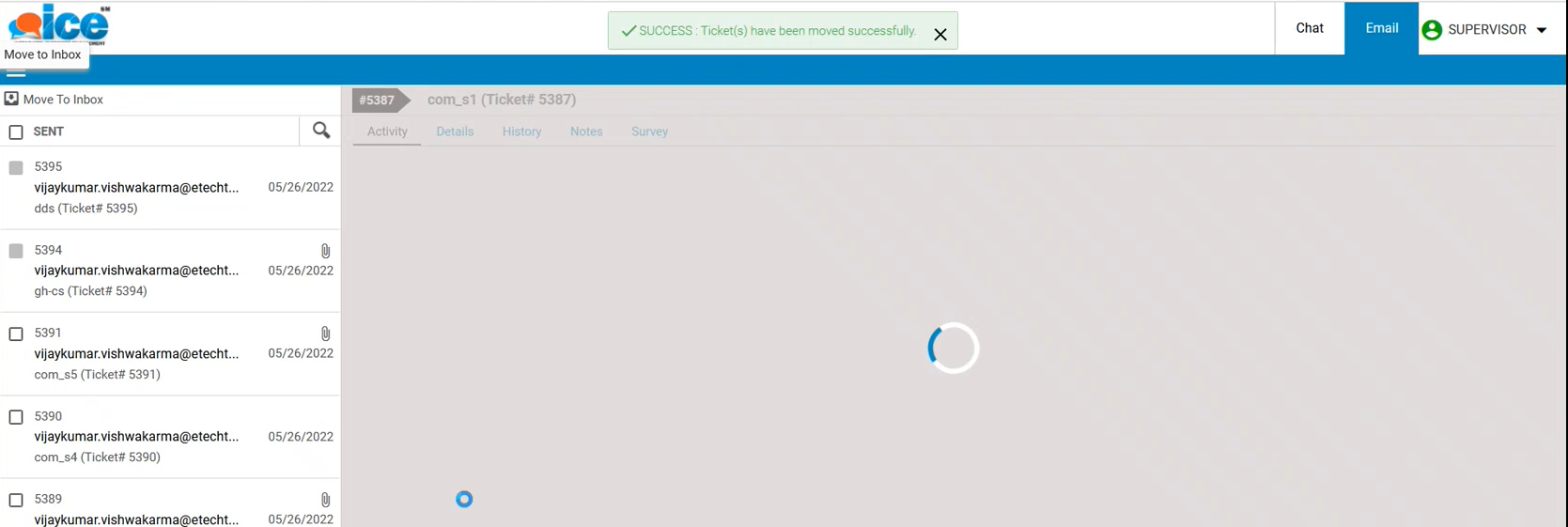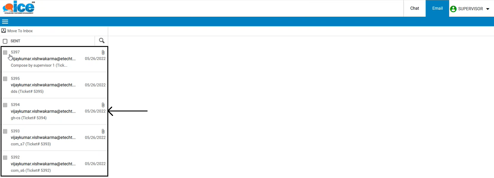 ICE Supervisors can move the one, multiple, or all the emails from their sent folder to their Inbox folder in the ICE Email.
