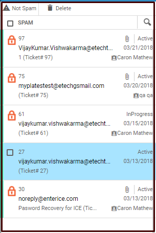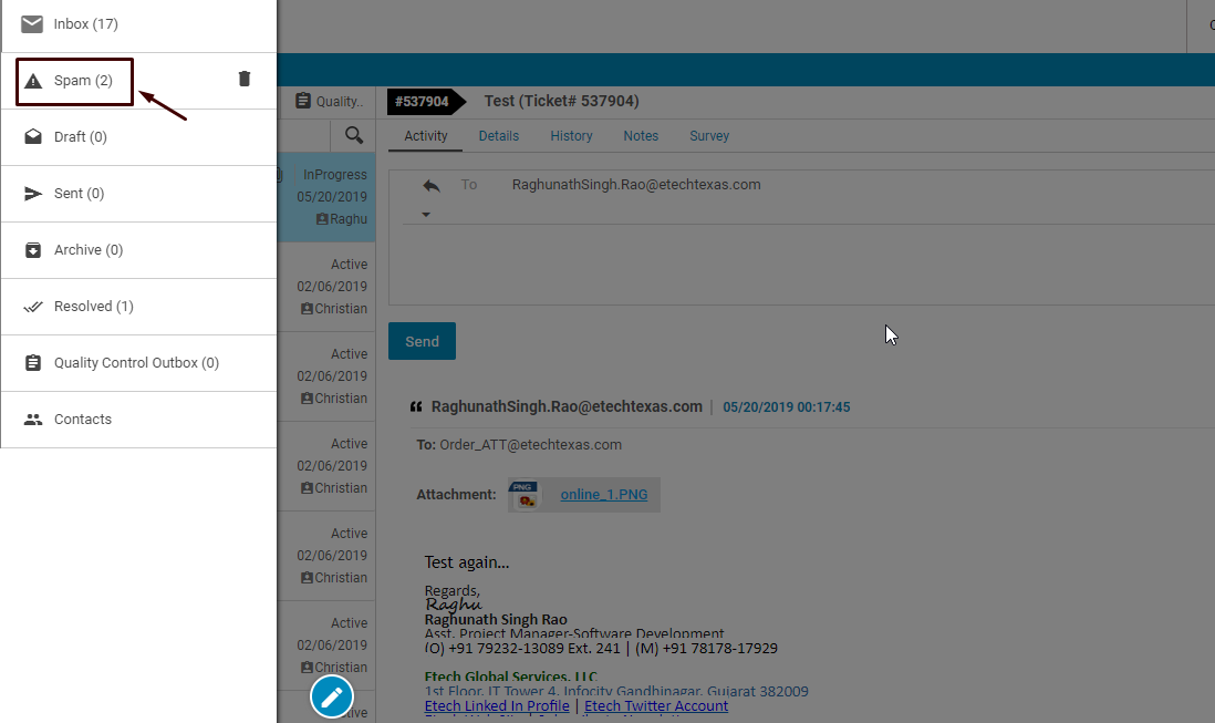 An operator can further select on any Spam email and take action as per requirement. An operator can either view ticket or send the ticket back to Inbox by clicking