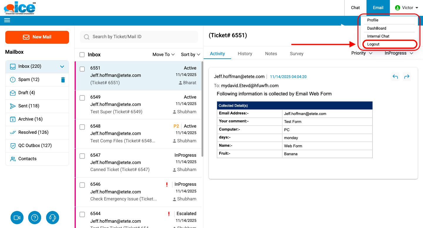 •To logout from the system go to User account>Logout as shown in the screen below-