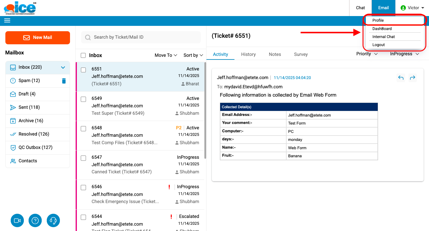 Click Profile under User account to view or update the profile as shown highlighted in the below image.