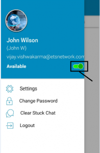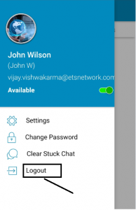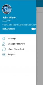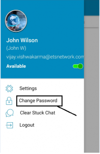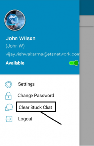 - The screen also displays other options such as Settings, Change Password, Clear Stuck Chat and Logout.