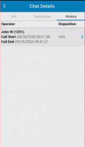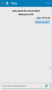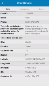 ICE mobile agent console also displays information and details of the connected visitor on agent console as shown in the below screen-
