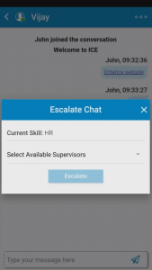 - Select supervisor name from the list and click on Escalate button to escalate the chat