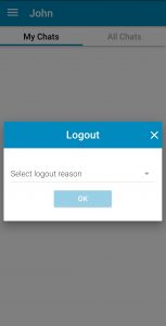 - As shown in the above screen, the system will prompt for a logout reason. An agent can select a valid logout reason from the dropdown box. This is as shown in the below screen-