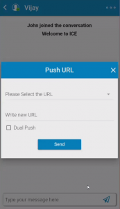 - Push URL- Allows an operator to send the URL to the visitor during the chat. Click the option and the system will open up a pop-up box as shown below-