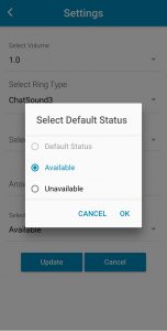 - Select Default Status- An agent can set his/her default availability by choosing the status from dropdown box. This is as shown below-