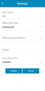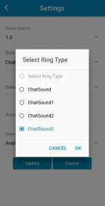 - Chat Ring Settings- Select the desired ring type from the dropdown box and click on the OK button. This is as shown in the below screen-