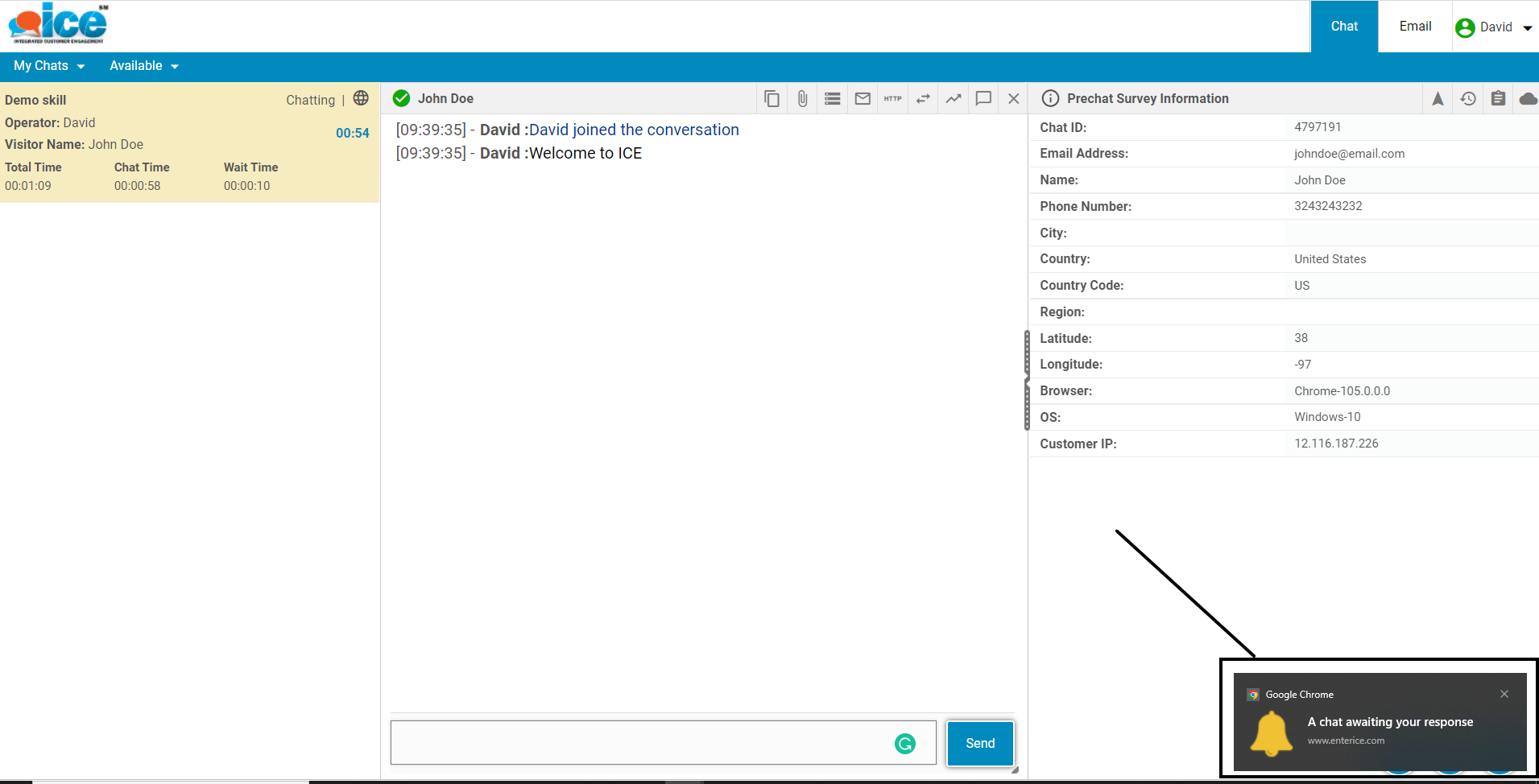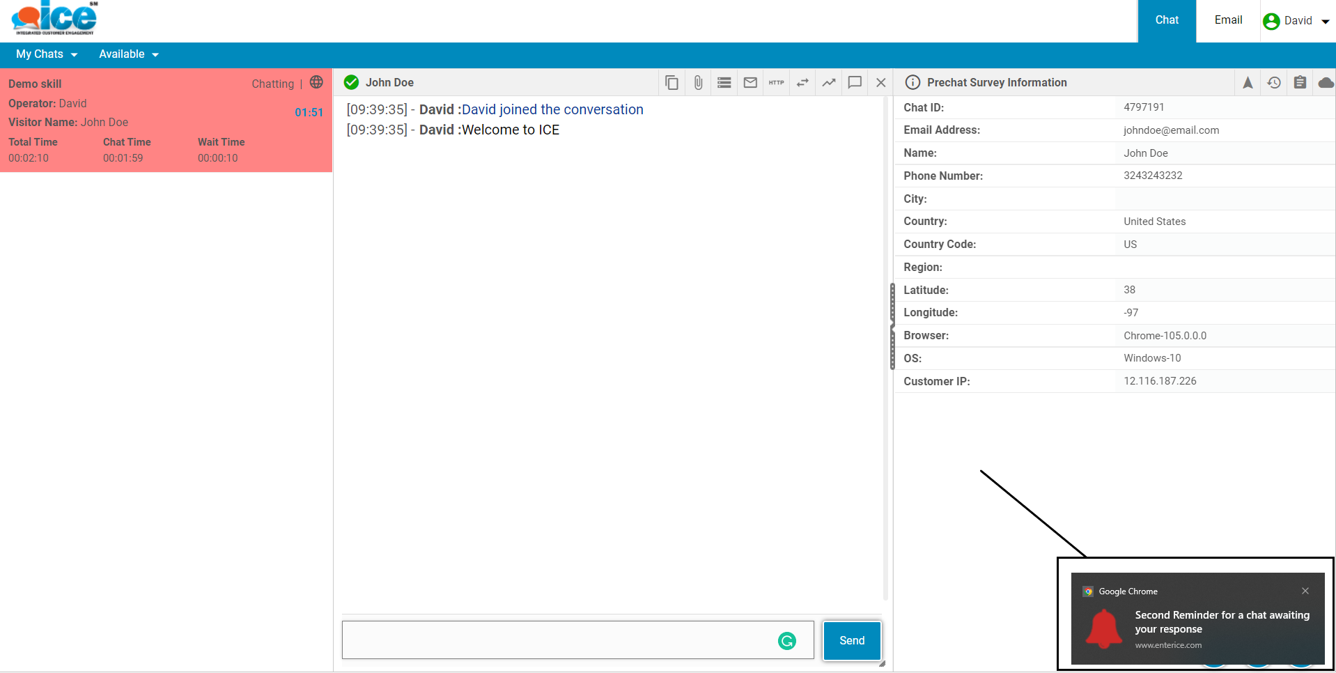 This notification has been designed to notify an operator of an unattended incoming chat at a specified interval of time.
