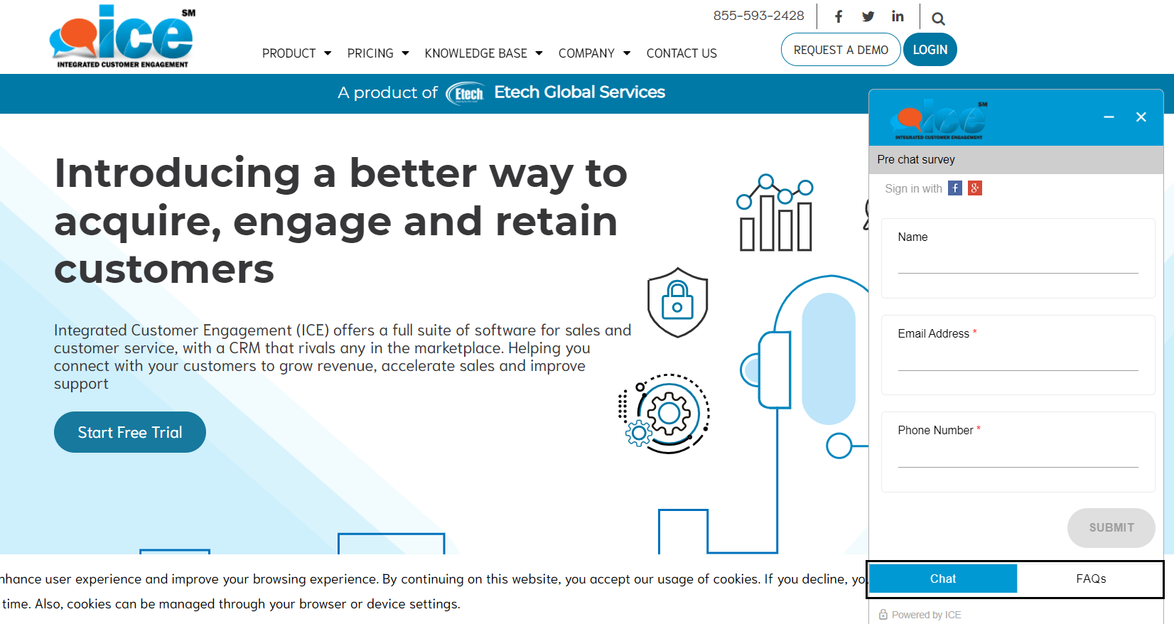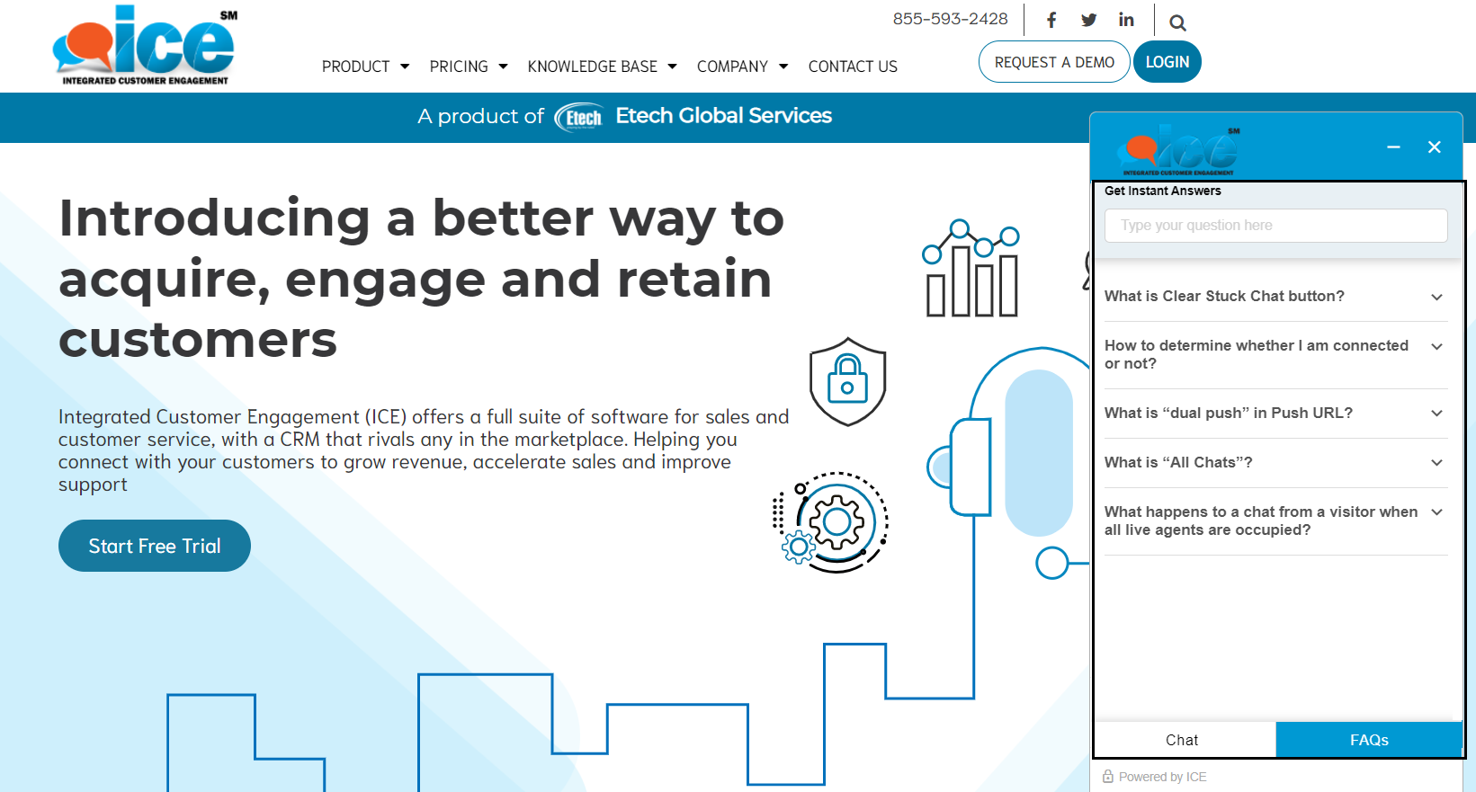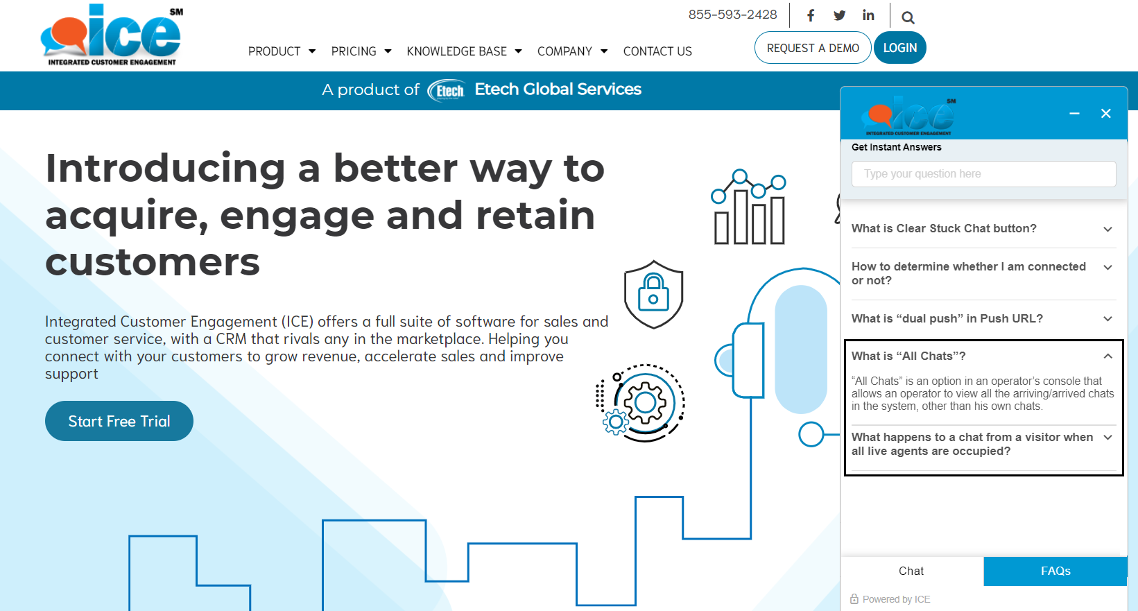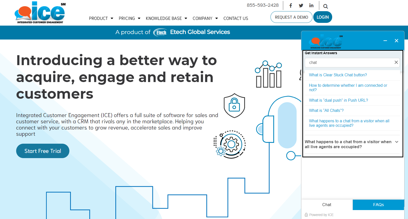 The ICE visitor console is implemented with the feature to display FAQs to the visitors. They can view FAQs while initiating the chat. They can search the FAQs based on the keywords.