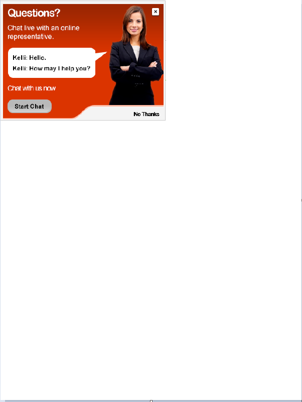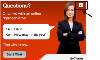 • If a visitor clicks on No Thanks button, the rule engine invitation interface will be closed and will not appear on the website again. Nevertheless, the website will display chat button as soon as the interface is closed.