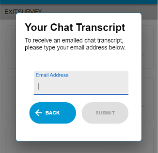 A visitor will be able to receive the transcript of the chat with agent in his/her mail address. To get the transcript, a visitor needs to click on the transcript icon as shown in the below screen-