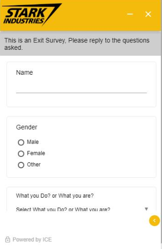 - Exit Survey- When a visitor fills the details for an exit survey and submits it, the system generates the following default message-